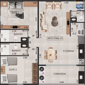 Apartamento para Comprar em Ubatuba, Tenório, 2 quartos